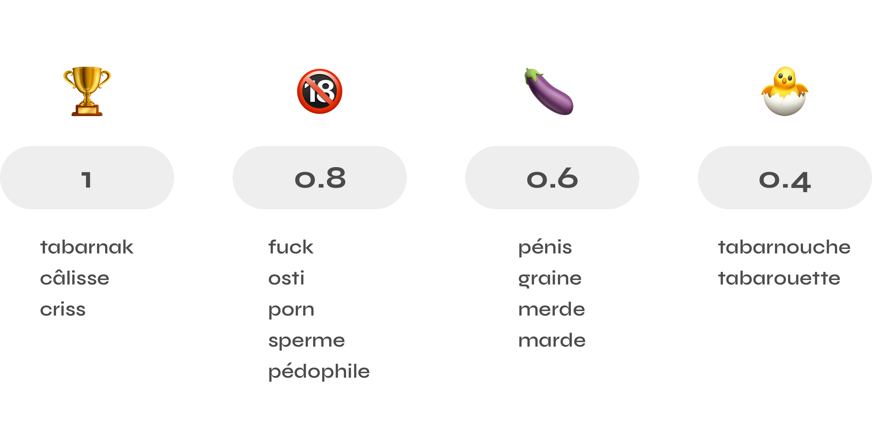 - Scoring of expressions, where 1 is the most vulgar, and 0.4 the least.